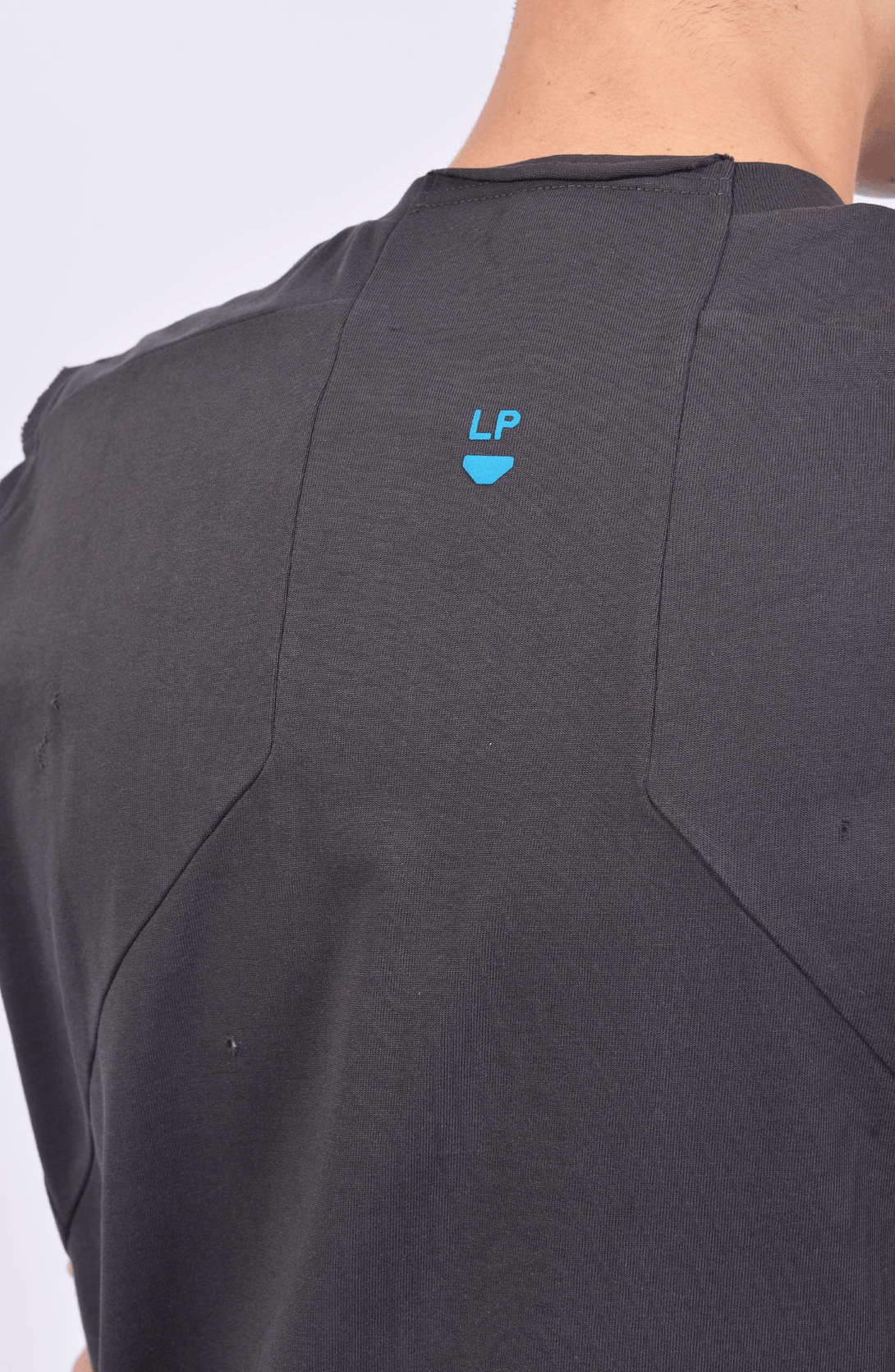 • Raw edge detailing on neckline and cuffs.
