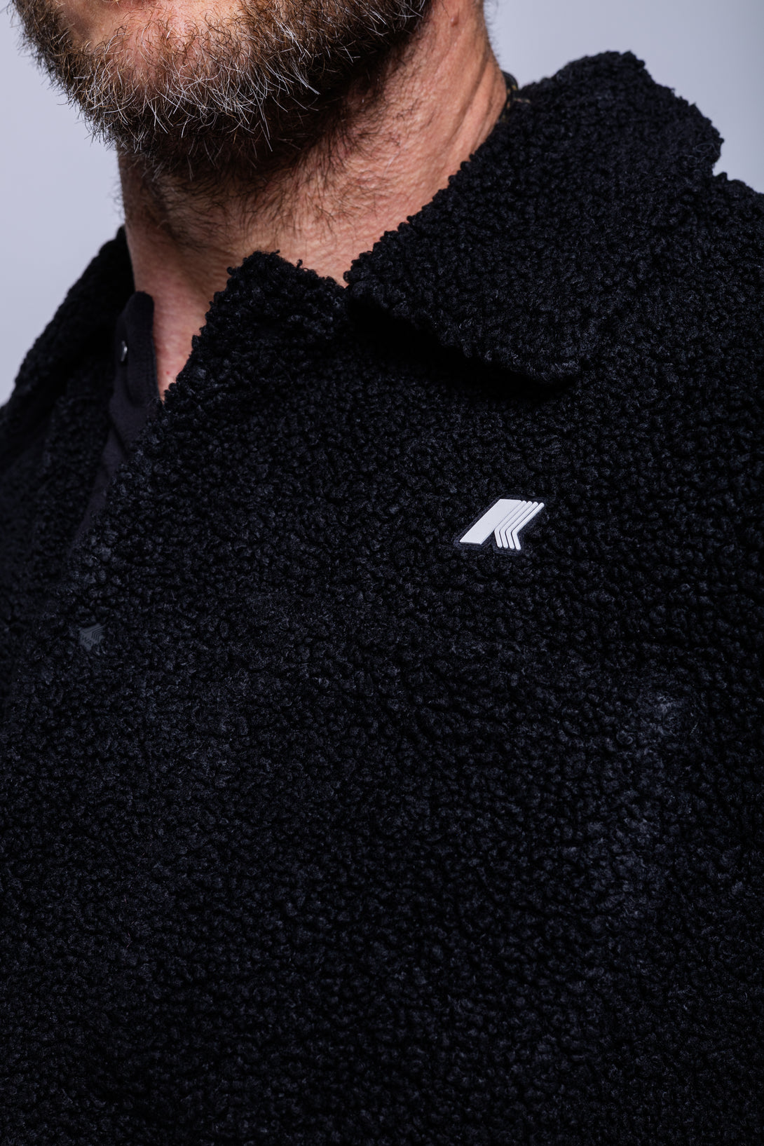 Cameron is a men's overshirt sporting a casual look with a regular fit. The garment, featuring two handy front pockets, is made from a double-layer reversible Polar fabric: one side is made from smooth fleece, while the other side is made from sherpa brushed fleece, providing a cozy, skin-friendly feel and a medium level of warmth, suitable for outdoor activities in autumn and early winter.