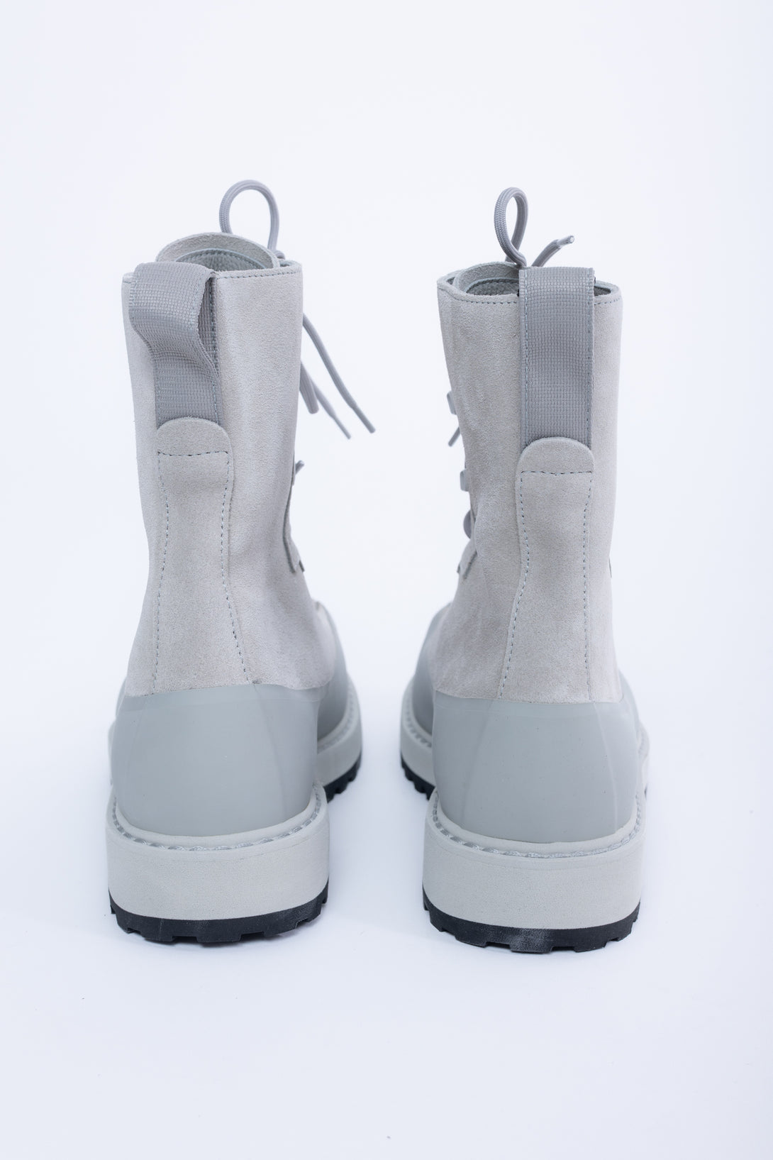 Metal loops and hooks with nylon cord lacing. Second lace that runs parallel to main lacing on lower half. Stone Island Compass logo patch on tongue. Tape loop on back. Contour rubber rand. Lug sole.