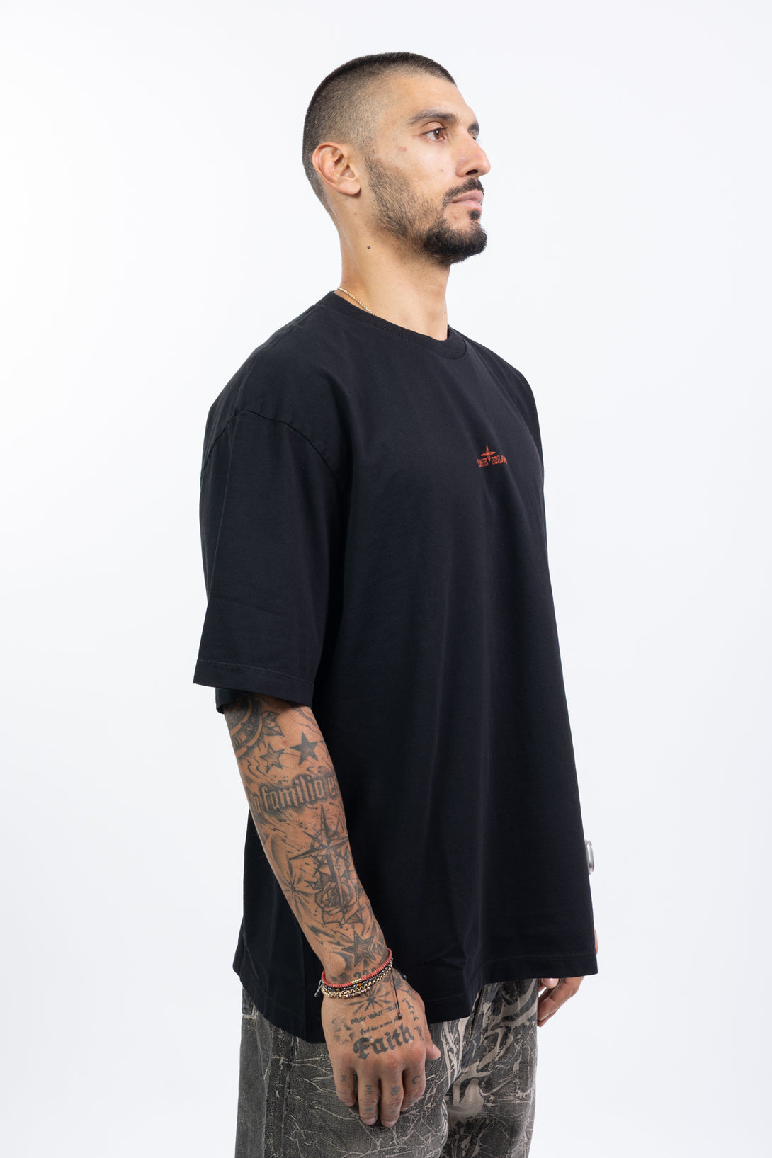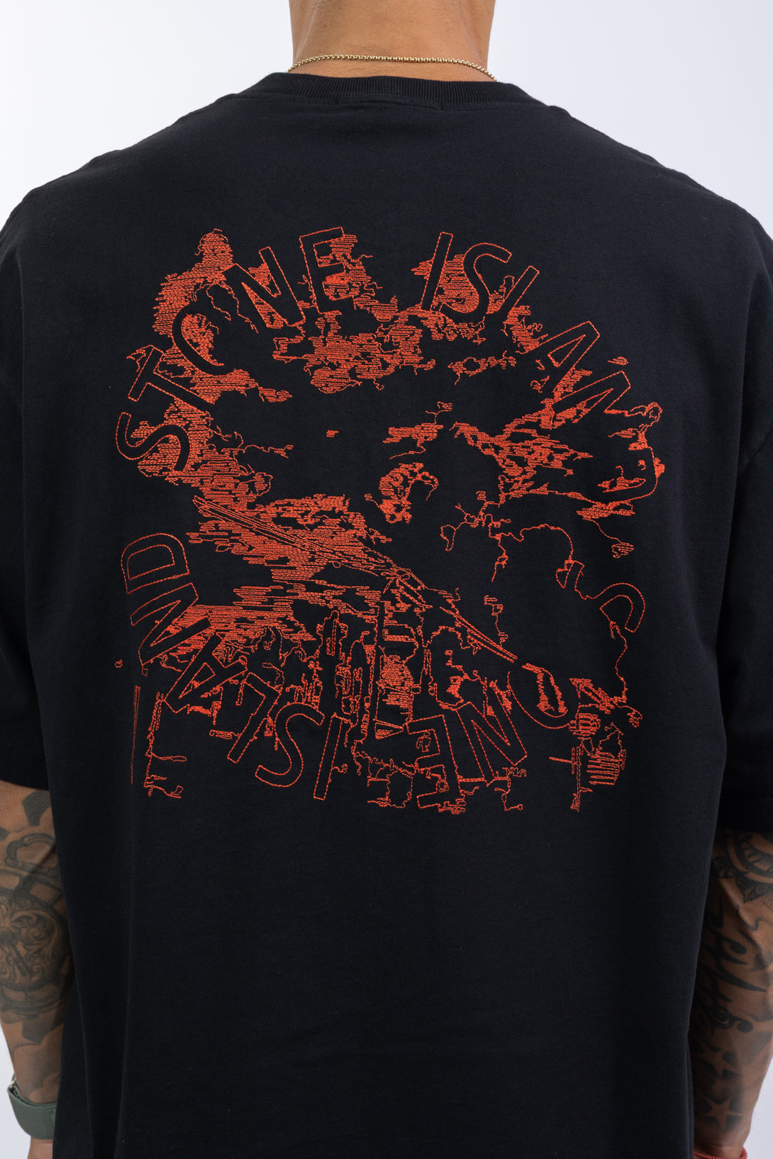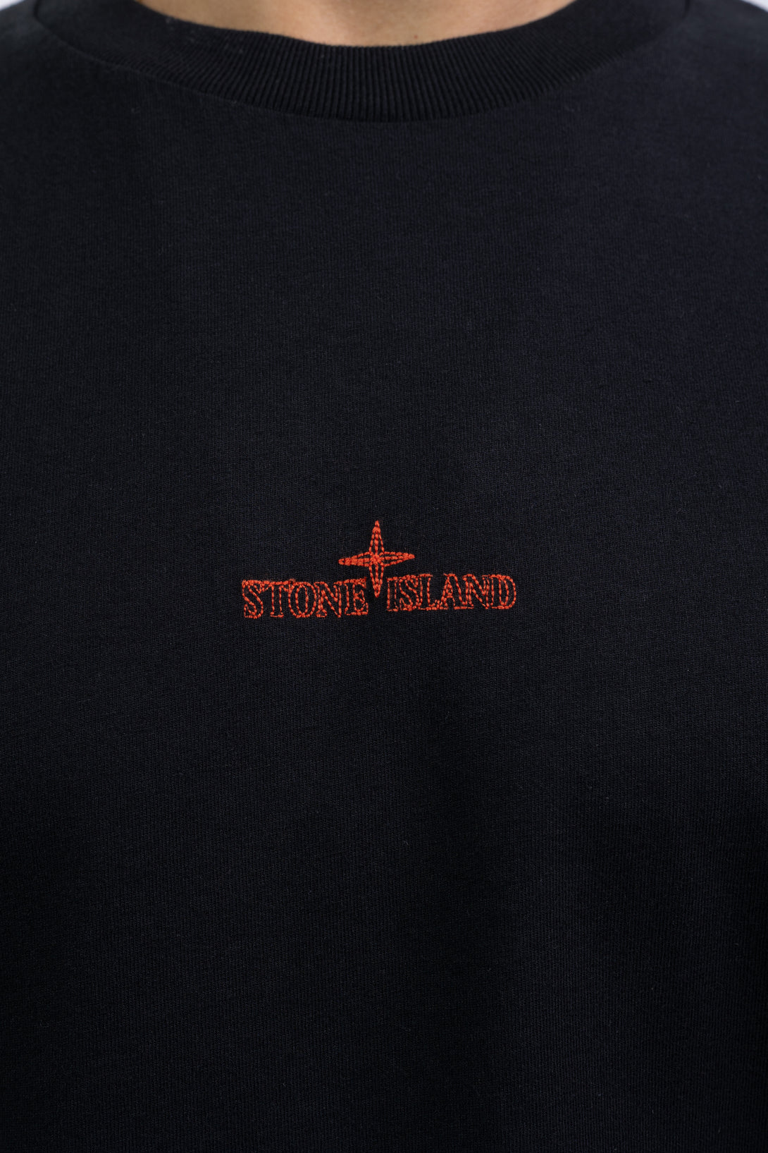 Ribbed neckline. Stone Island logo embroidery on chest. Embroidery of abstract city motif and Stone Island lettering on back. Regular fit.